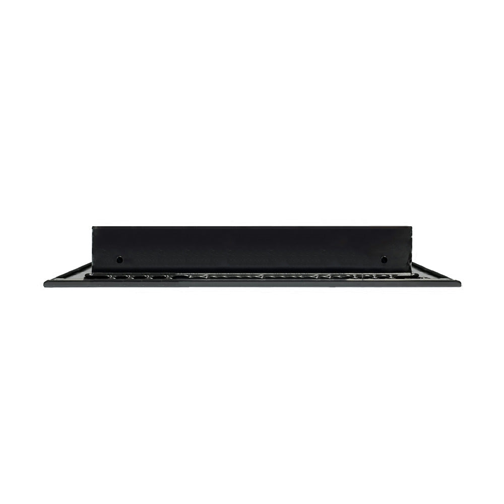 - Texas Buildmart offers Modern AC Vent Covers also known as High Quality Standard Linear Slot Diffusers. This Modern AC Vent Cover shoots a 90-degree spread with option to adjust to one side or the other. These have decorative directional dampers. Modern, crisp, clean lines and architecturally appealing. Solid extruded aluminum profile with welding - Electrostatic Paint which makes it easy to clean because of its dust-resistance. This black air vent register can be used as a supply air vent cover for ceilings, walls, and floors. This vent cover was designed to be decorative and not structural. You can use this as a floor vent cover, but it is not designed to support weight, adding any type of weight is not recommended. This vent can be used as a return air vent cover as well. This register is not only a vent cover, but it looks like a Modern Contemporary looking fixture. If our Modern AC Vent Cover is used as a Return air vent cover, please make sure the air vent cover is placed in the full open position or remove the directional dampers. Update your Ceilings, Walls & Floor Vents with our Modern AC Vent Covers and it will update the entire look of your Home or Office Space. Rejillas para aire acondicionado de casa negro. We make all sizes from 6x4 to 30x24 Standard Sized Modern AC Vent Covers for the Modern Day Home. *This is a Design and Utility Patent Pending Product*